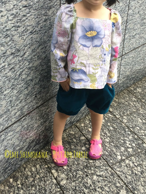 My absolute favorite one is the top I made with some leftover fabric I got from my MIL's stash. For this one, I simplified it by using the lining pieces for the outer bodice, lengthened the top again (by adding 6cm to the bottom) and had it flare out in an A-line shape juuuuuust a bit.