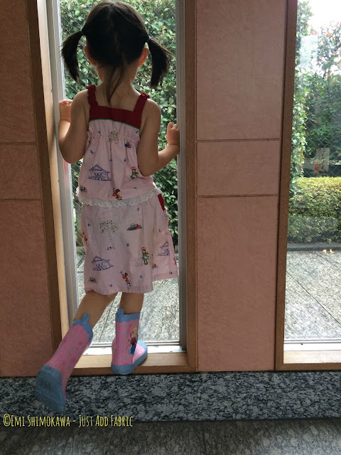 For this top, I was inspired by the pretty one made by Sprouting Jujubee. Check out her post here. I love it so much! Mine isn't as flared, mainly because I wasn't sure I would get it right not as skilled a sewist, and I didn't want to screw up since I didn't have much of this fabric left.