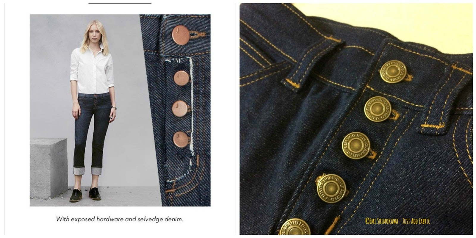 ReplyDeleteLol! I'm glad you like the buttons -- I am hoping that Lauren does a tutorial for a proper button fly, ha ha! And yes, I am working on a skinny version but please don't get your hopes up because I'm not really a skinny jeans person.... ;)